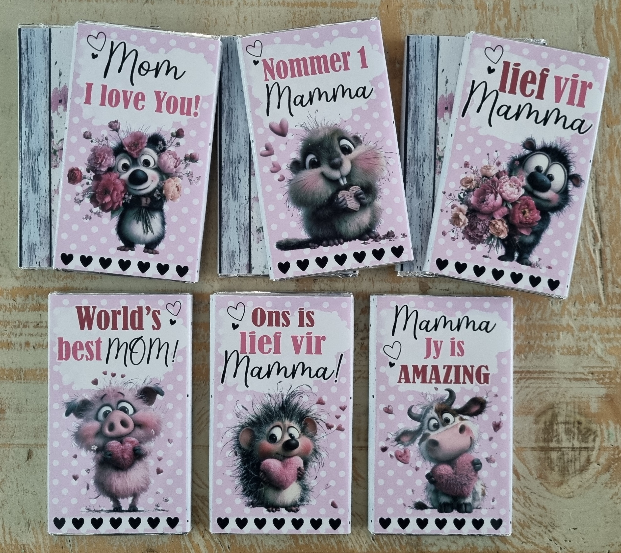 | MOTHER'S DAY CHOCOLATES | MOM I LOVE YOU, NOMMER 1 MAMMA, LIEF VIR MAMMA, WORLD'S BEST MOM, ONS IS LIEF VIR MAMMA, MAMMA IS AMAZING, MIXED |